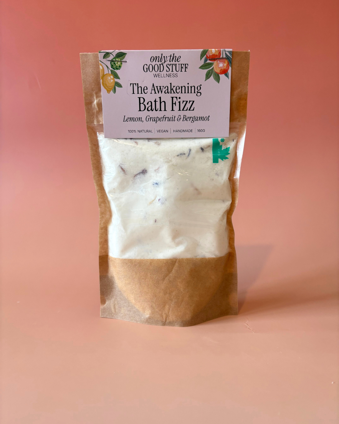 This Bath Fizz contains Lemon, Grapefruit and Bergamot essential oils alongside dried flowers. Grapefruit and bergamot helps to balance mood and relieve stress, whilst lemon essential oil works to fight exhaustion, helps with depression and defend the body against harmful pathogens and promotes detoxification.
